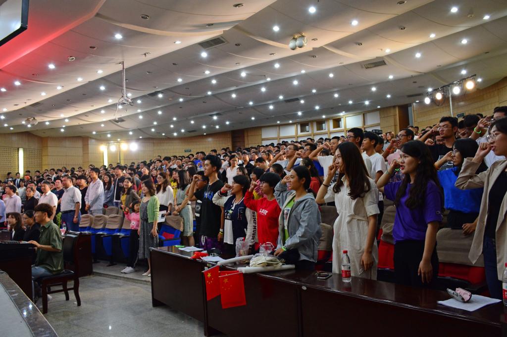 新生代表王金晓、老生代表吴笑天分别进行发言。新生代表姜裴岩带领全体新生进行宣誓。